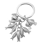 - "Design Complexe et Durable : Ce porte-clés est fabriqué en métal de haute qualité avec une finition argentée polie. Chacun des multiples charmes de poisson présente des éca...